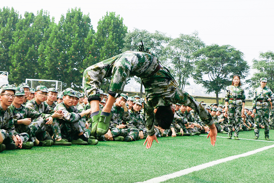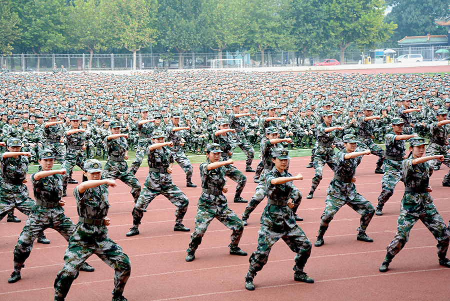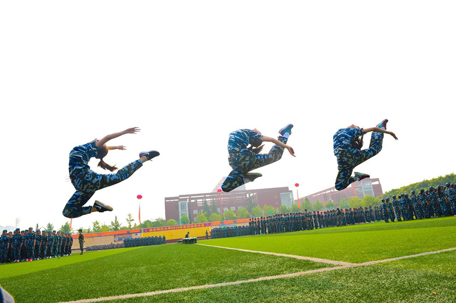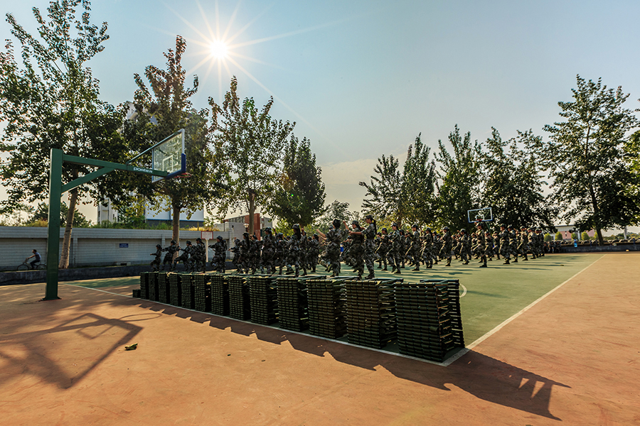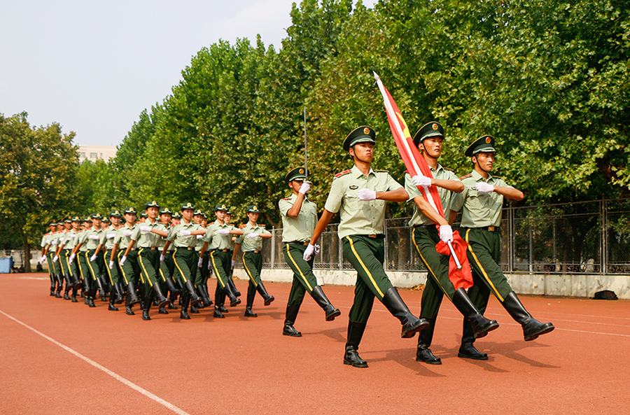 清辉的早晨,嘹亮的军歌,我们迈着坚定的步伐走在阳光下,展露出新的生机。
