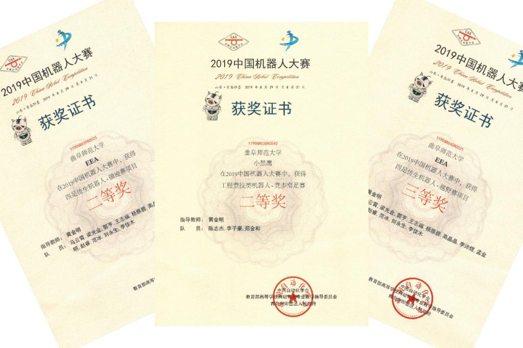 近日,由中国自动化学会与青岛市即墨区政府共同主办的2019中国机器人大赛在青岛即墨举行。由我校工学院黄金明老师指导的学生参赛队伍在大赛中表现突出,获得二等奖两项、三等奖一项。