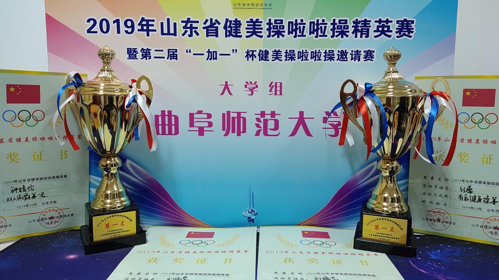 12月13日至15日,2019年山东省健美操啦啦操精英赛在济南火热开赛。本次比赛由山东省体操运动协会主办,近千名运动员参赛。D体育在线登录官网代表队在体育教学部负责人带领下,取得优异成绩:钟婧怡、刘雨蒙同学在大学组双人街舞比赛中荣获第一名;纪蕾、刘晓艺同学荣获大学组双人有氧操第一名。