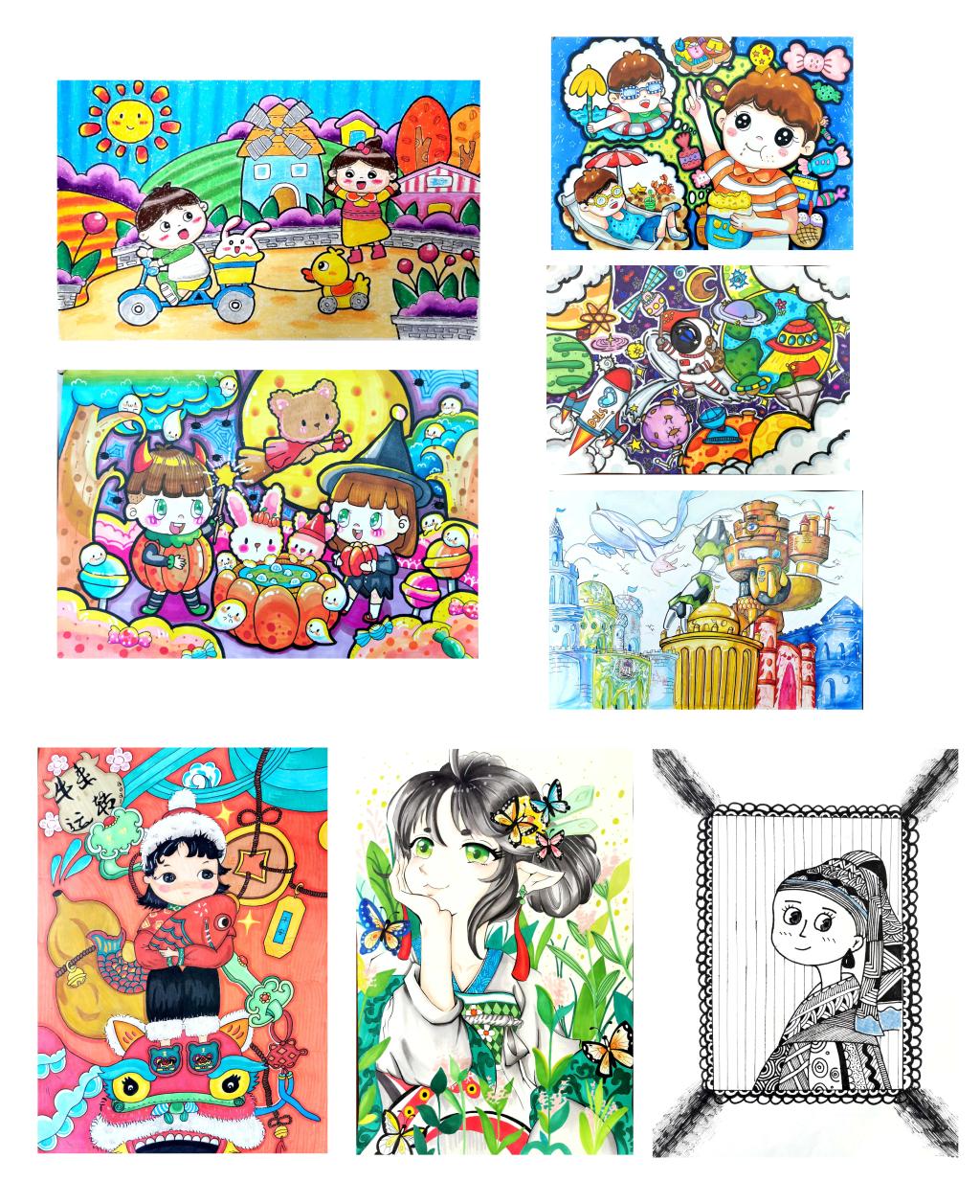 同学们积极参与,认真构思设计,挥毫泼墨。学前教育、教育学和小学教育专业的同学们运用水粉、水彩、蜡笔、马克笔、钢笔等多种工具和表现形式,表达了充满创造力、想象力和富有教育意涵的童话故事、卡通形象、教育漫画、绘本插图。同学们的画作均为原创,手工绘制,精彩纷呈,展现了良好的艺术修养、扎实的专业基本功和对教育事业、对儿童的浓浓热爱。