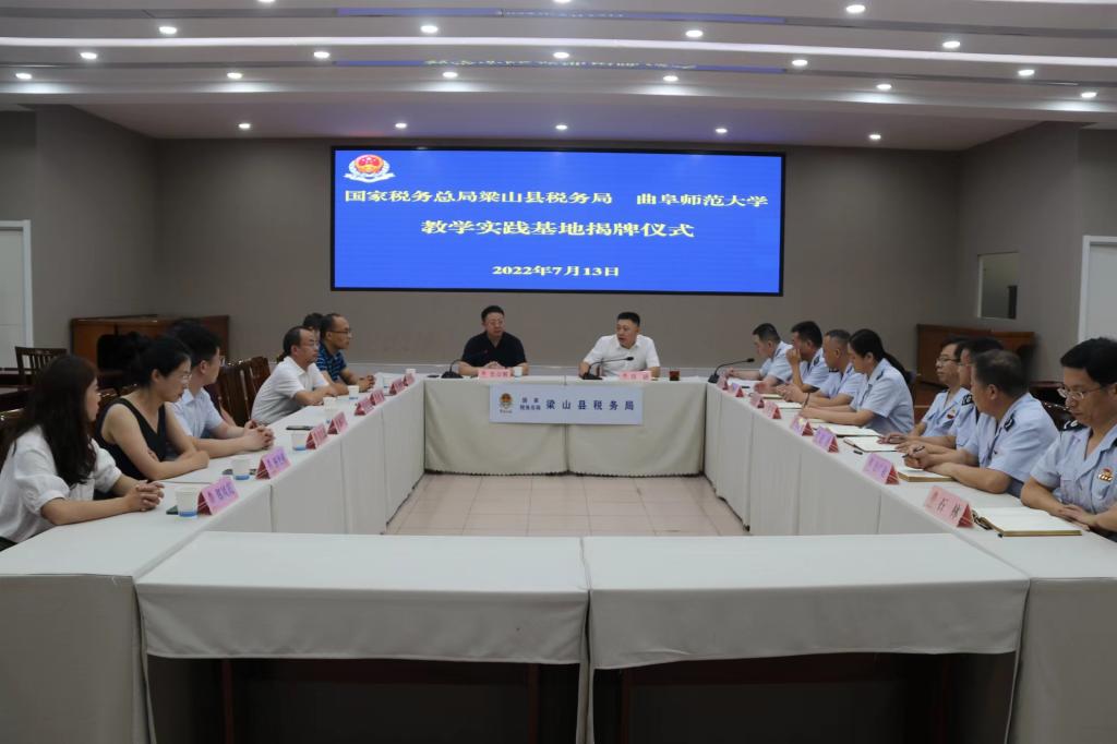 曲阜师大新闻中心讯 (通讯员:魏新宇)7月13日,为进一步开展校地合作,助推产学研融合发展以及教学实践基地建设,法学院与国家税务总局梁山县税务局举行校地合作签约揭牌仪式。法学院院长张益刚,梁山县税务局党委书记、局长贾斌出席活动,法学院集中实习指导老师和教师代表、梁山县税务局相关负责人共同参加活动。