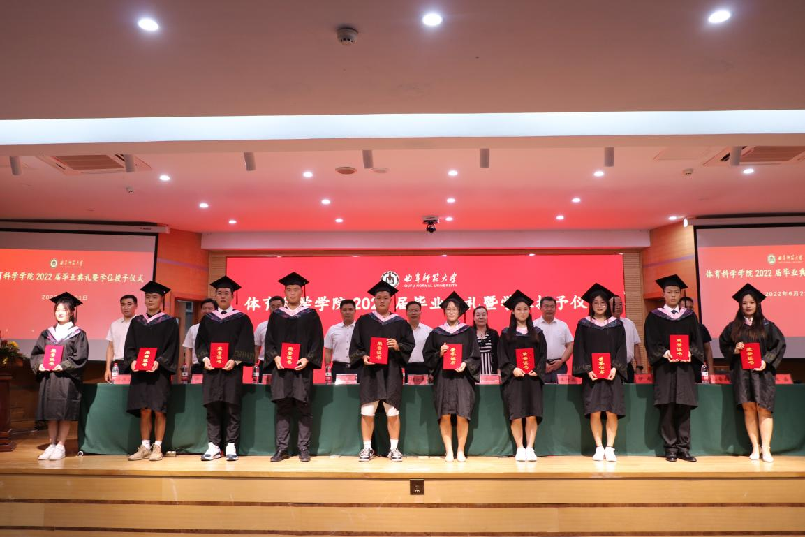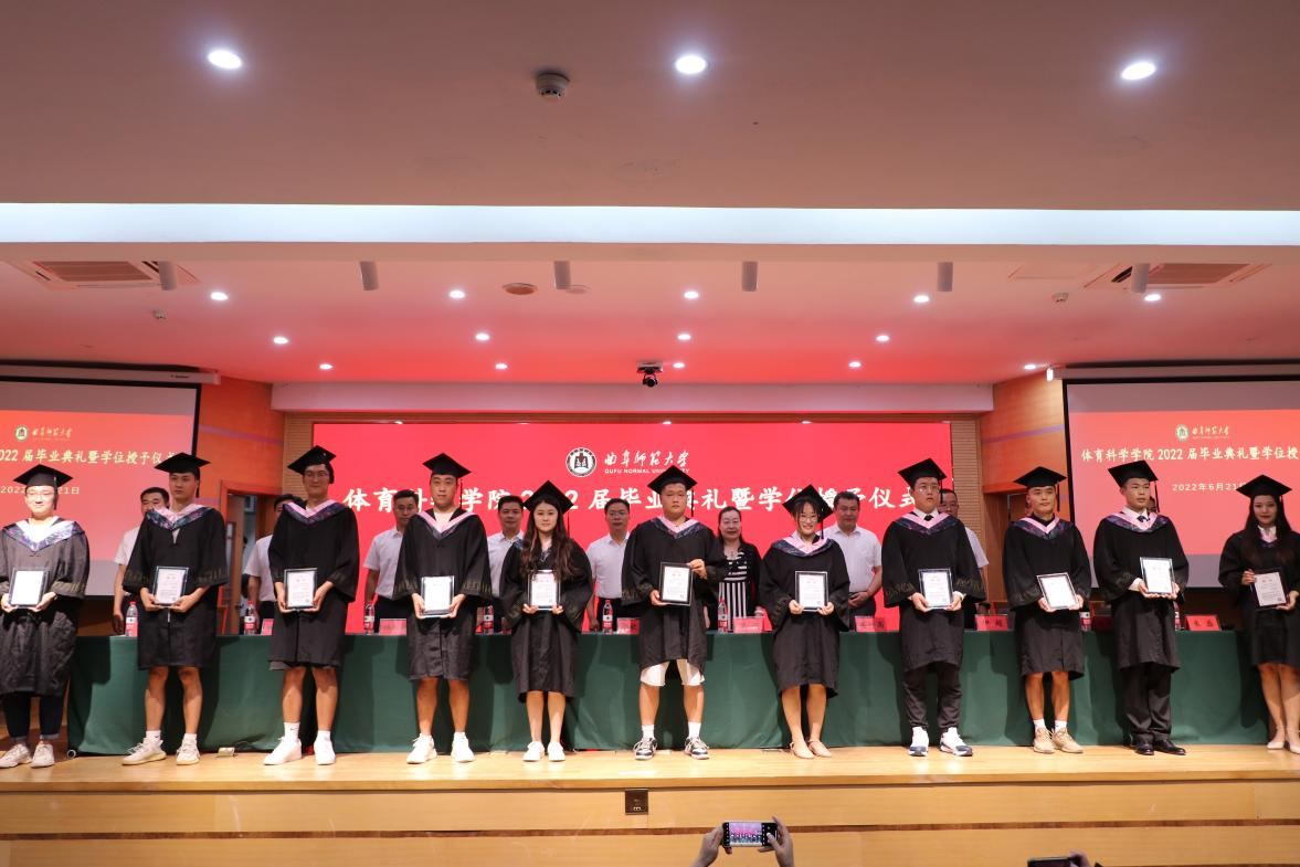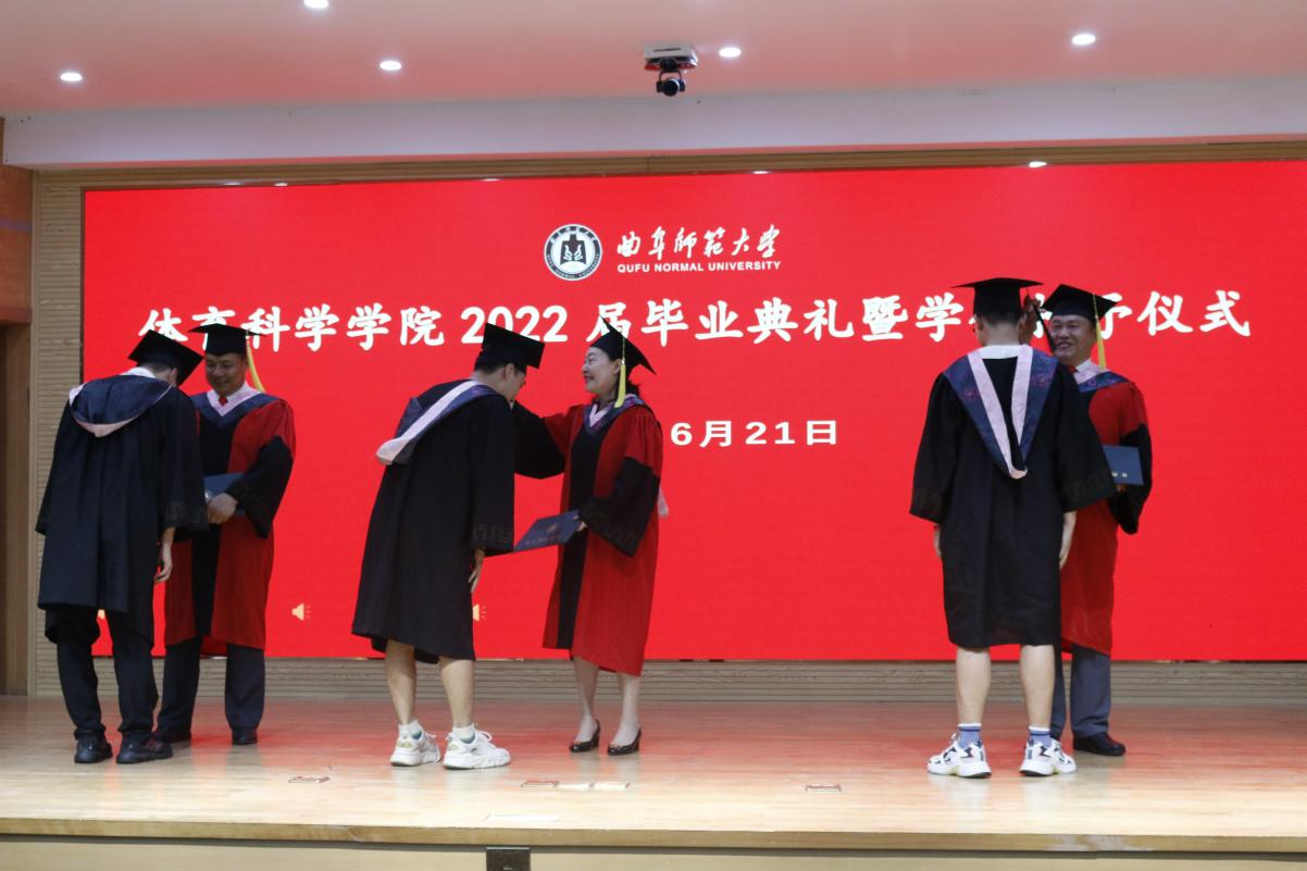 毕业典礼后举行了学位授予仪式。体育科学学院名誉院长曹莉、体育科学学院党委书记刘敏、院长姜付高为毕业生拨穗正冠,并颁发学位证书。