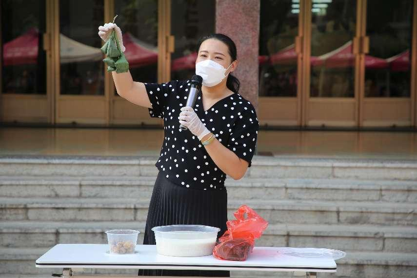 折叶、盛料、压实、裹叶、扎绳……包粽子可是一门技术活。学院特意邀请包粽子技术娴熟的老师,为同学们展示这门手艺。活动现场的师生们先后开展了书写寄语、诗朗诵、包粽子、旱地龙舟等活动,度过了一个充满乐趣和教育意义的端午节。