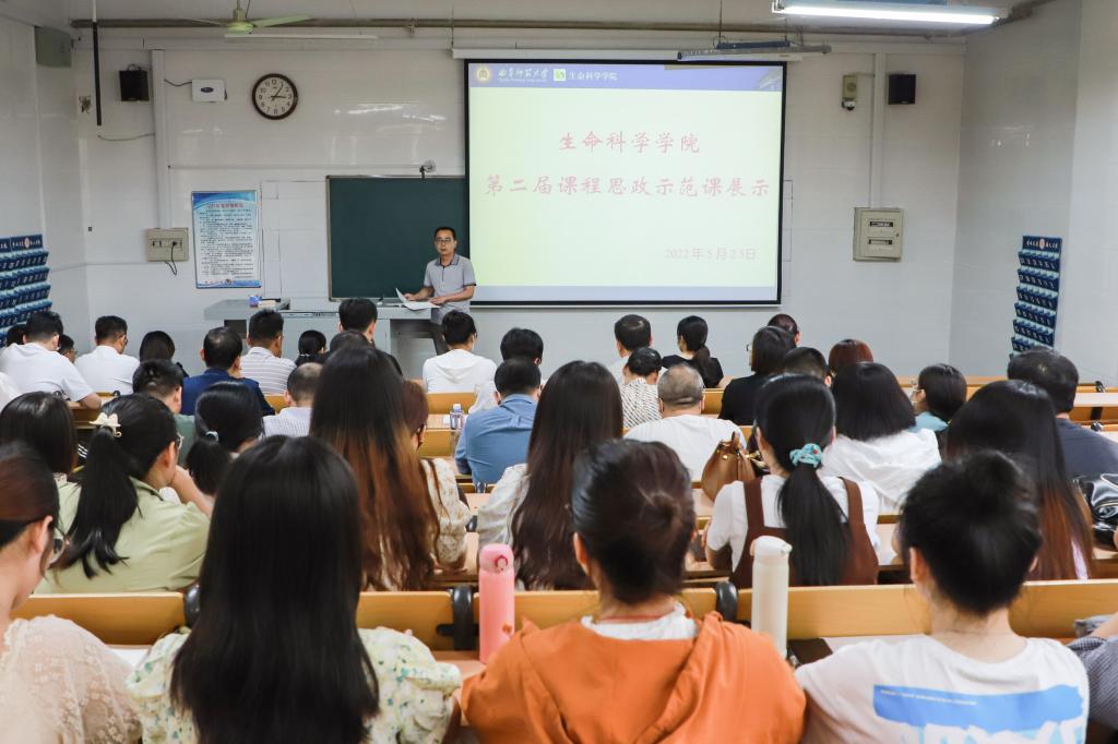 曲阜师大新闻中心讯(通讯员:刘彦彦 罗珊 吕晓正) 为进一步推进课程思政工作,5月25日下午,生命科学学院举办第二届课程思政示范课展示活动。学院党委书记李志广、院长王仁君、党委副书记张明洁、院长助理燕艳、第二届课程思政示范课展示教师以及学院全体专任教师参加了活动。