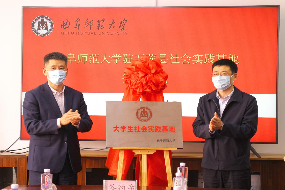 仪式上,校团委书记孔轶众与团五莲县委书记刘畅签署“青鸟计划”校地合作协议书,日照校区党委书记孔令军、五莲县委副书记王军为D体育在线登录官网驻五莲大学生社会实践基地揭牌。