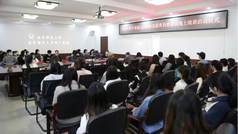 曲阜师大新闻中心(通讯员:冯萌萌 摄影:孙晓伟) 5月13日下午,曲阜师大国家语言文字推广基地举行2022年济宁市幼儿园教师和保育员普通话线上培训启动仪式。济宁市教育局总督学张兆杰,曲阜师大国家语言文字推广基地执行主任、文学院院长夏静教授,基地常务副主任李建校教授,培训主讲教师和助教,以及350名幼儿园教师和保育员参加了仪式。