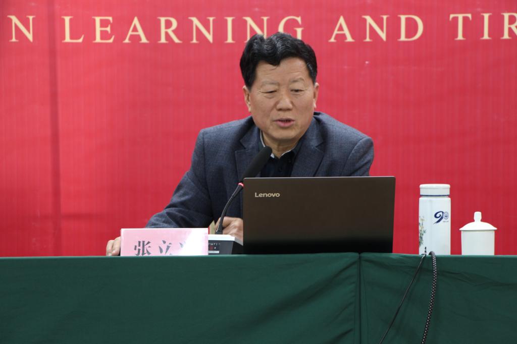 张立兴教授从新《党章》鲜明的时代特性和辅导员如何牢记初心、践行使命两个大的方面进行了深入的阐述。他从新《党章》“空前强调”的十二个方面分析了其时代特性,结合新《党章》和时代要求,以及个人担任辅导员的切身经历对全体辅导员如何牢记初心、践行使命提出了建议和要求。他指出,作为新时代的高校辅导员,必须强化理论学习、强化政治意识、强化责任担当,努力成为让学生信赖敬仰的良师益友。