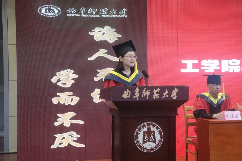 工学院党委书记、院长张书东在典礼上致辞。他代表学院向顺利完成学业的毕业生们表示热烈的祝贺,衷心希望同学们传承母校“学而不厌,诲人不倦”的校训精神,发扬犁牛之子精神,为建设孔子家乡一流大学、为实现中华民族伟大复兴中国梦砥砺前行。