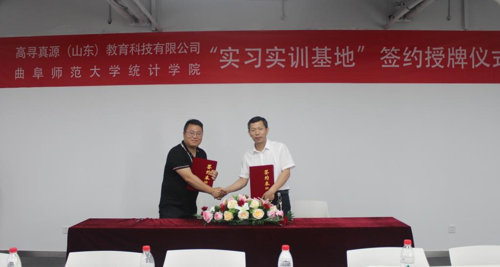 曲阜师大新闻中心讯(通讯员:陈晓婷)6月9日上午,D体育在线登录官网统计学院和高寻真源(山东)教育科技有限公司(以下简称高寻真源公司)举行了实习实训基地签约授牌仪式。统计学院院长尹传存、副院长赵胜利、院长助理赵翔华,高寻真源公司总经理张欣、副总经理韩帅、营销中心执行总监兰新、大客户经理曹鹏,出席了签约仪式。