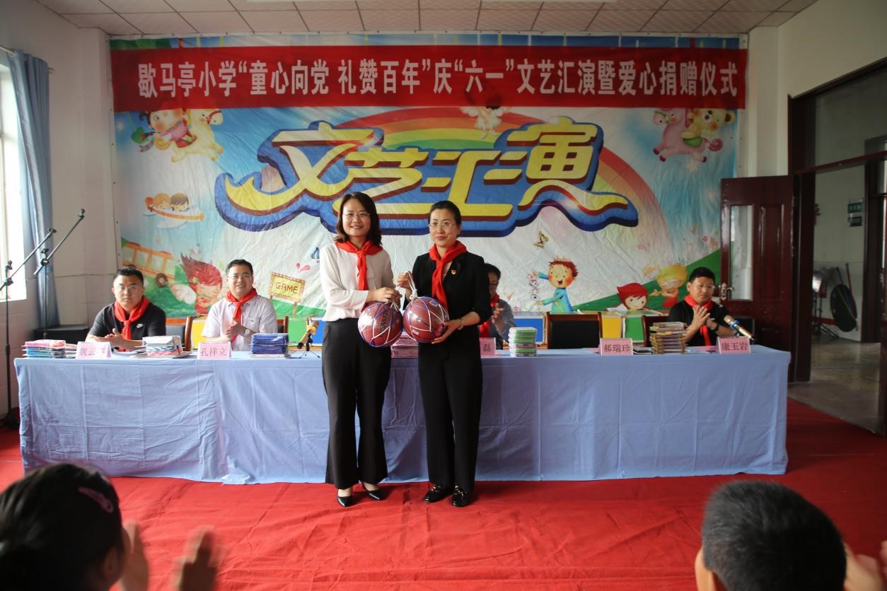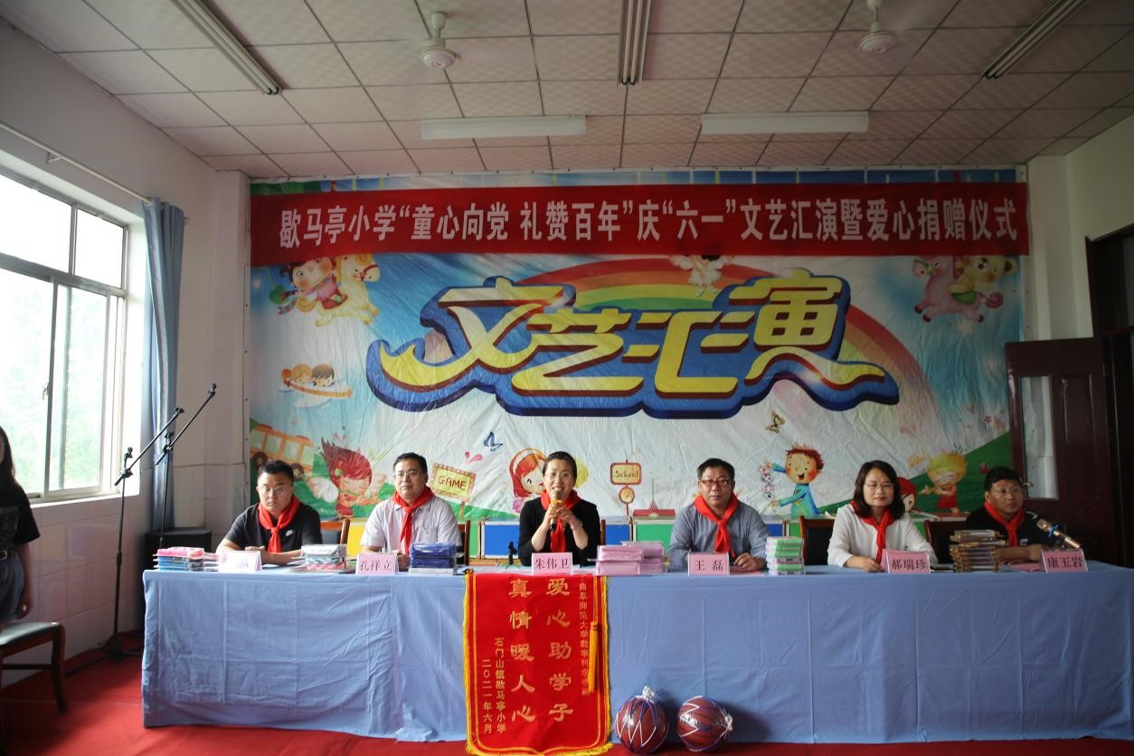 曲阜师大新闻中心讯 6月1日,数学科学学院师生走进歇马亭小学,举办了“歇马亭小学‘童心向党 礼赞百年’庆‘六一’文艺汇演”暨爱心捐赠仪式。数学科学学院团委书记朱伟卫、办公室主任孔祥立、教工党支部书记魏云亮、歇马亭小学校长郝瑞珍以及辅导员老师和学生代表参加了活动。
