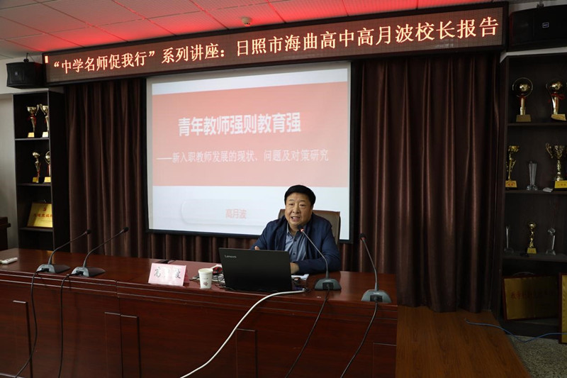 “中学名师促我行”首场报告会于4月25日在马克思主义学院会议室举行,日照市海曲高级中学校长、全国优秀教育工作者、齐鲁名校长、日照市有突出贡献中青年专家、日照市“五一”劳动奖章获得者高月波作了题为“青年教师强则教育强——新入职教师发展的现状、问题及对策研究”的讲座。讲座由马克思主义学院常务副院长孙迪亮主持,马克思主义学部党委副书记宋钧文、马克思主义学院院长助理任松峰、团委书记张林、《纲要》教研室主任王德成、学科教学(思政)专业研究生、2019级本科免师生参加。