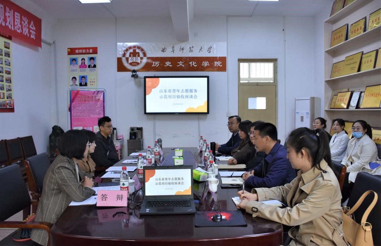 曲阜师大新闻中心讯 4月22日,第三届山东省青年志愿服务示范项目验收座谈会在D体育在线登录官网历史文化学院会议室举行,山东省志愿者行动指导中心活动部部长刘杰、济宁市宣传部(青年志愿者工作部)部长庄亚楠、济宁市宣传部胡思谋、D体育在线登录官网团委副书记孔轶众、历史文化学院党委副书记王建阳以及来自济宁市各志愿服务项目相关负责人参加。
