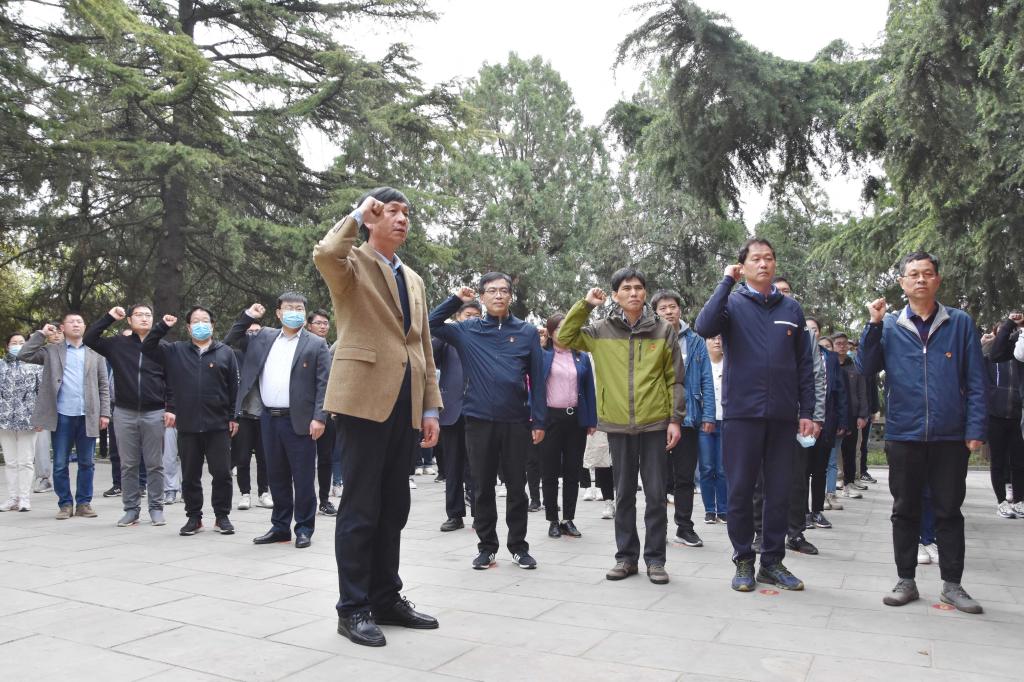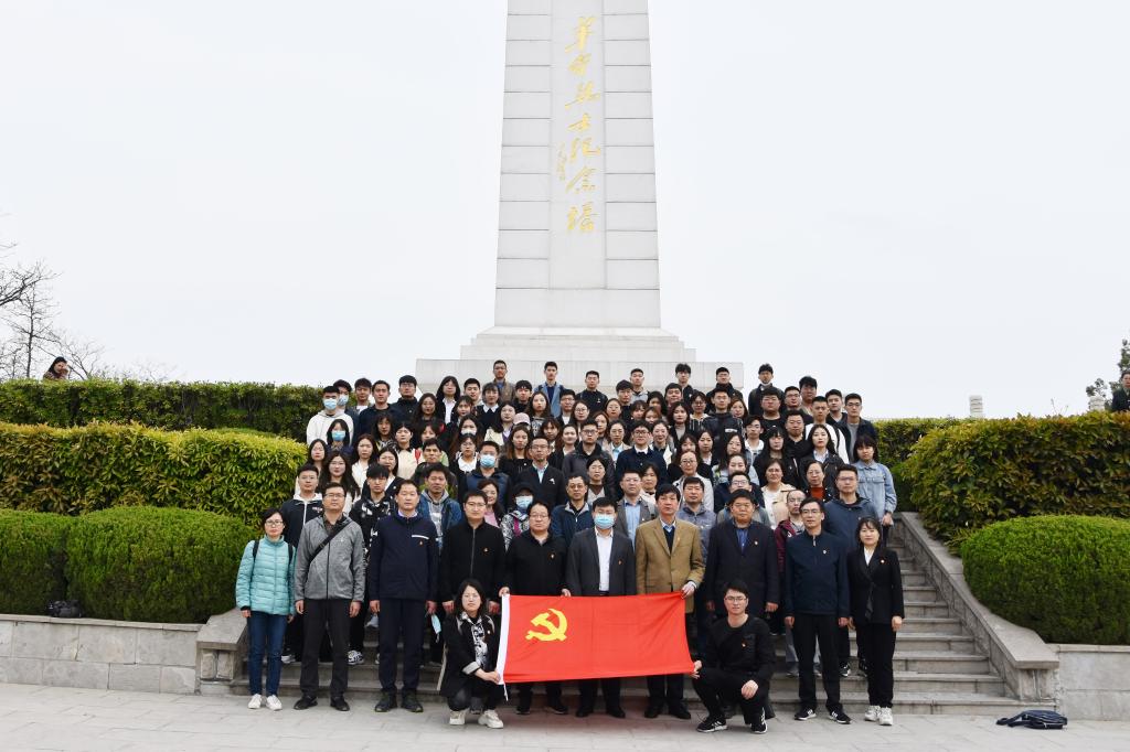 大家怀着庄严肃穆的心情,瞻仰了革命烈士公墓和烈士纪念塔,敬献花篮,鞠躬致敬,肃立默哀。70年前,晋冀鲁豫野战军突破黄河天险,发动鲁西南战役,这是一场曾经关乎全中国命运的伟大战役。而羊山战役,正是鲁西南战役的最后一战,也是最为惨烈的一战。丰碑的重量,大地知道;英雄烈士,祖国不会忘记,人民不会忘记!面向鲜红的党旗,学院党委书记田云飞带领大家一起重温了入党誓词,铮铮誓言,昭示了党员们对党无限的忠诚,为共产主义事业奋斗终身的坚定信念。