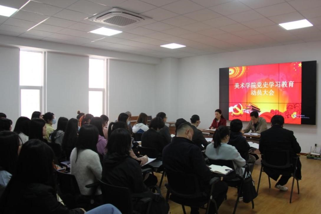 曲阜师大新闻中心讯 3月26日上午10点,美术学院在M楼201会议室召开党史学习教育动员大会,党委书记周彩霞主持本次会议,美术学院全体党员参加此次会议。