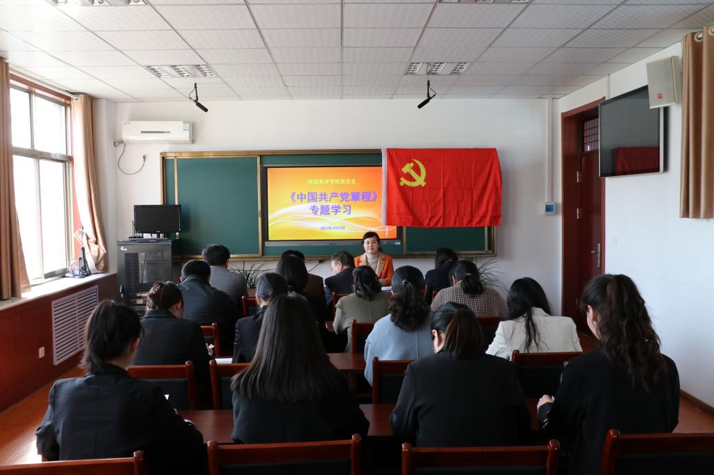 曲阜师大新闻中心讯 为进一步提高师生思想认识,不断加强党性修养,3月22日下午,继续教育学院党总支举办了《中国共产党章程》专题学习,全体师生党员参加会议。会议由学院党总支书记茌淑君主持。