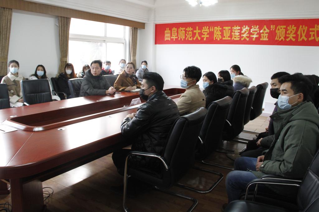 曲阜师大新闻中心讯(通讯员:李霞 摄影:刘萌 王超) 12月28日,我校举行第三届“陈亚莲奖学金”颁奖仪式。党委常委、宣传部部长张隆海出席颁奖仪式,体育科学学院、书法学院、美术学院、音乐学院、孔子文化研究院师生代表参加了活动,仪式由孔子教育基金会秘书长孔宪福主持。