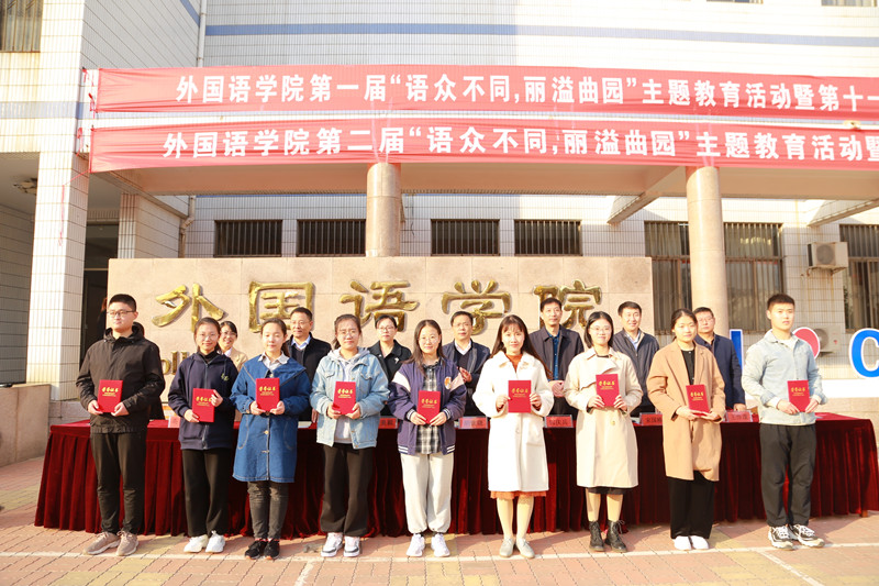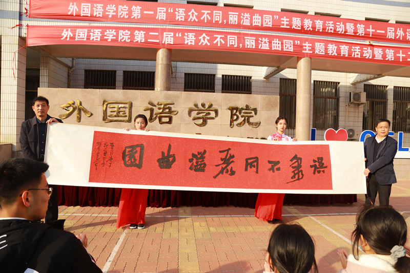 曲阜师大新闻中心讯(通讯员:张晓 罗拓新)值此D体育在线登录官网建校六十五周年、外国语学院建院六十周年之际,为响应“不忘初心、牢记使命”主题教育活动要求,进一步推动学院发展和学生成长,11月4日午,外国语学院第一届“语众不同,丽溢曲园”主题教育活动暨第十一届外语文化艺术节总结表彰大会和第二届“语众不同,丽溢曲园”主题教育活动暨第十二届外语文化艺术节启动仪式举行。副校长胡钦晓,党委常委、组织部部长郭庆兵,学生工作处处长姜美颖,团委书记宋国栋,外国语学院院长秦洪武、学院党委副书记王作茂、院长助理高歌出席仪式。校学生会、各学院学生会代表,外国语学院全体学生干部,2018级学生干部、2019级、2020级全体同学参加了活动。
