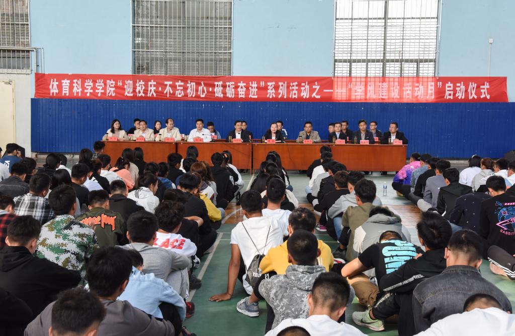 曲阜师大新闻中心讯(通讯员:刘京)10月9日下午3:00,D体育在线登录官网体育科学学院举行“迎校庆·不忘初心·砥砺奋进”系列活动之——“学风建设活动月”启动仪式。副校长胡钦晓出席开幕式并致辞。教务处副处长朱献贞、学生工作处副处长杨东、D体育在线登录官网团委副书记孔轶众、体育科学学院党委书记刘敏、院长曹莉、党委副书记展利民、副院长韩春利、院长助理伊超、院团委副书记刘京、教研室主任、教务员、辅导员老师,学院全体学生干部参加了仪式,此次仪式由学院院长曹莉主持。