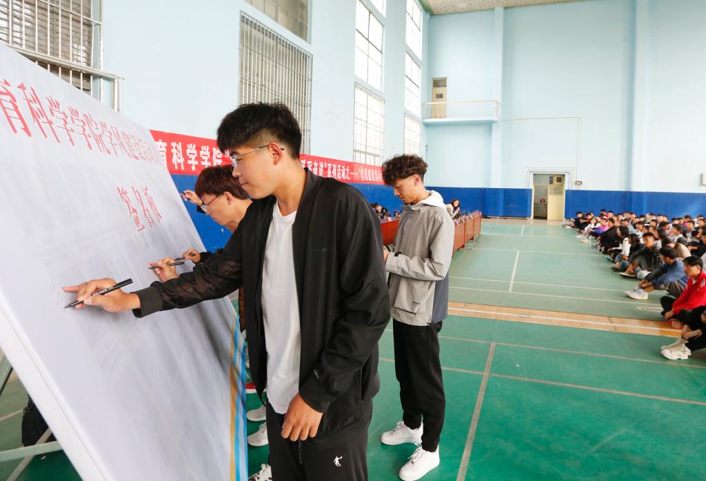 最后各位领导、老师以及学生在“慎思笃行树学风,好学力行造良材”学风建设活动月签名板进行签名并拍照留念。