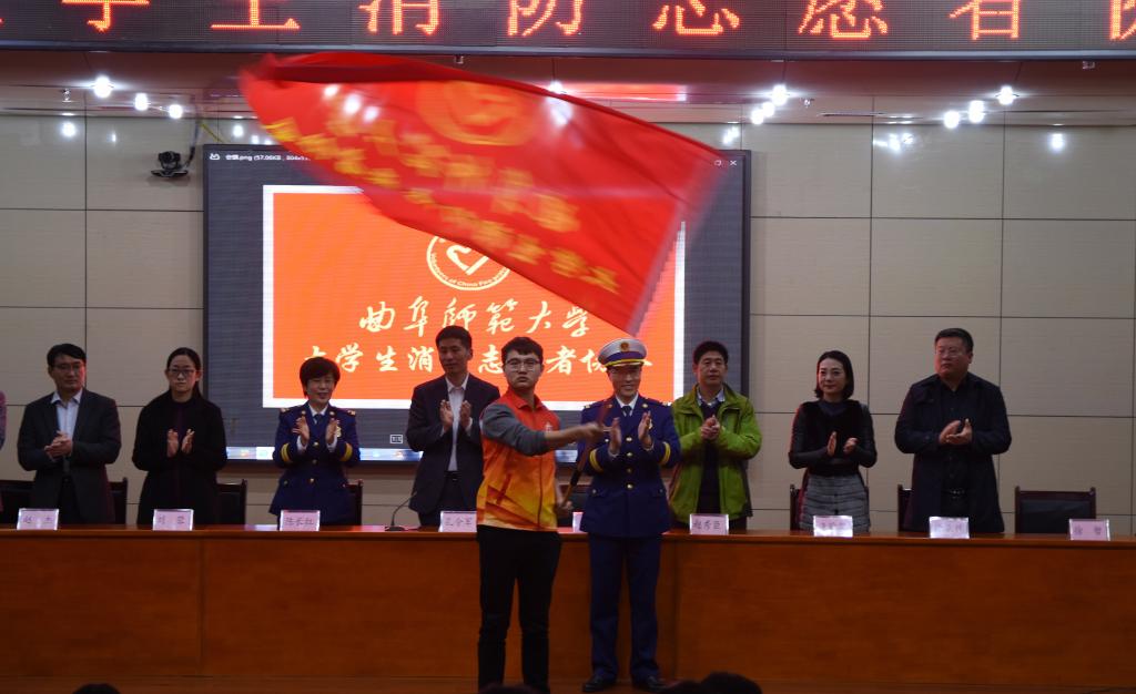 1113日下午,我校举行大学生消防志愿者协会成立大会。日照校区管理办公室主任孔令军、日照市应急救援支队防火处处长辛本顺、防火专家陈长红、学工部副部长赵秀臣、校团委副书记刘蓉、图书馆副馆长唐蒙蒙和各学院党委副书记出席了本次会议。会议由保卫处副处长王光江主持。