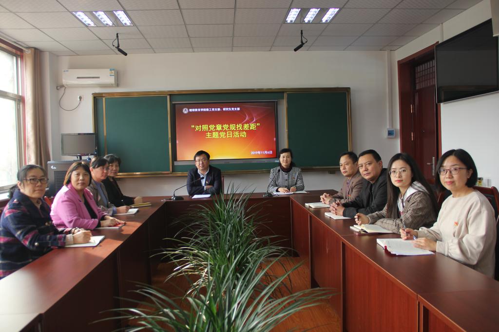 11月6日,为贯彻落实学校党委《关于在“不忘初心、牢记使命”主题教育中对照党章党规找差距的工作方案》要求,继续教育学院教工党支部、研究生党支部联合举办了“对照党章党规找差距”主题党日活动,党总支书记茌淑君主持,学院全体师生党员参加。