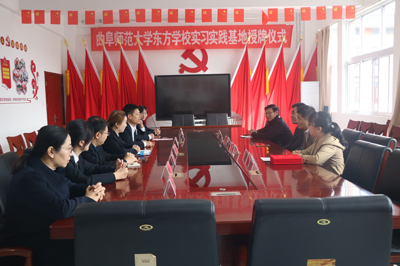 近日,外国语学院实习实践基地授牌仪式于曲阜东方学校成功举行。外国语学院党委书记费沂涛、党委副书记王作茂、团委书记王旖旎、英语系副主任邢加新,曲阜东方学校校长王延志、副校长康杰出席授牌仪式。