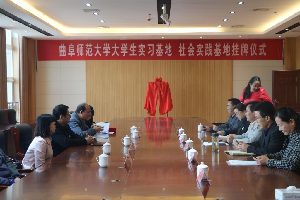 王作茂分别与张金启、曹静共同揭牌,马蓉分别与张金启、曹静签订实习基地协议,王旖旎分别与张金启、曹静签订社会实践基地协议。王作茂、马蓉为金乡县第一中学、金乡县第二中学的特聘教师发放聘书,聘请金乡县第一中学郝慧娟、田胜利、刘雪梅、仇芬芬、张玉琳(俄),金乡县第二中学殷春香、丁道文、孙春光、尚继占、张福红(俄)等10位老师为大学生实习“指导教师”。