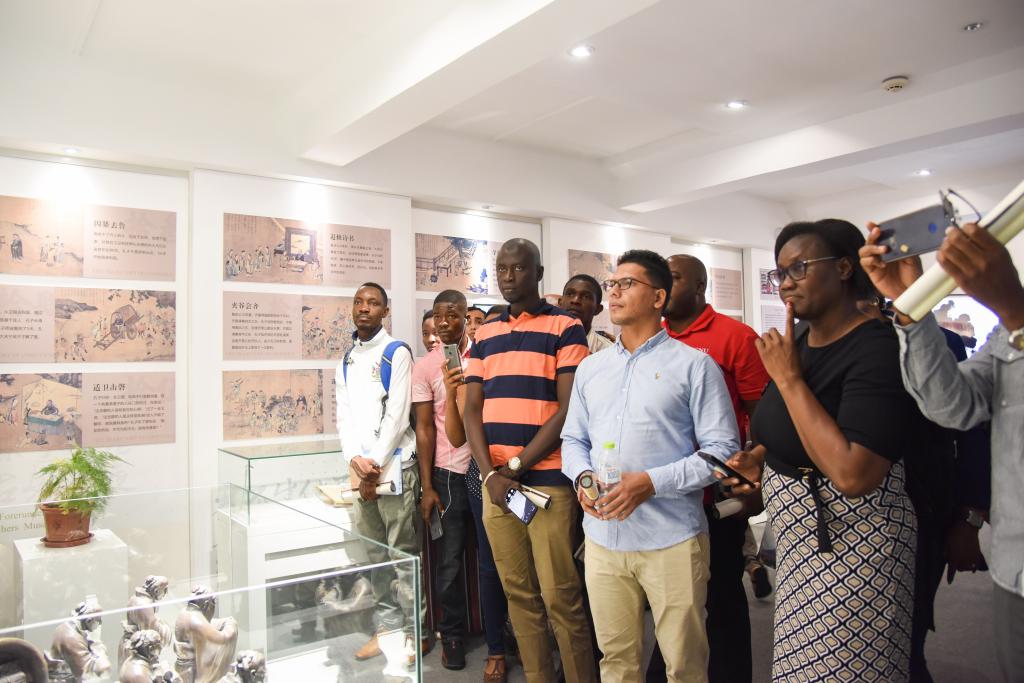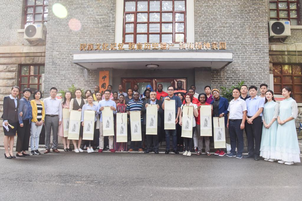9月26日上午,孔子文化节前夕,第14届“联合国教科文组织孔子教育奖”三位获奖代表及参加颁奖典礼和教育国际研讨会的三十余位代表,来校参观教师博物馆。