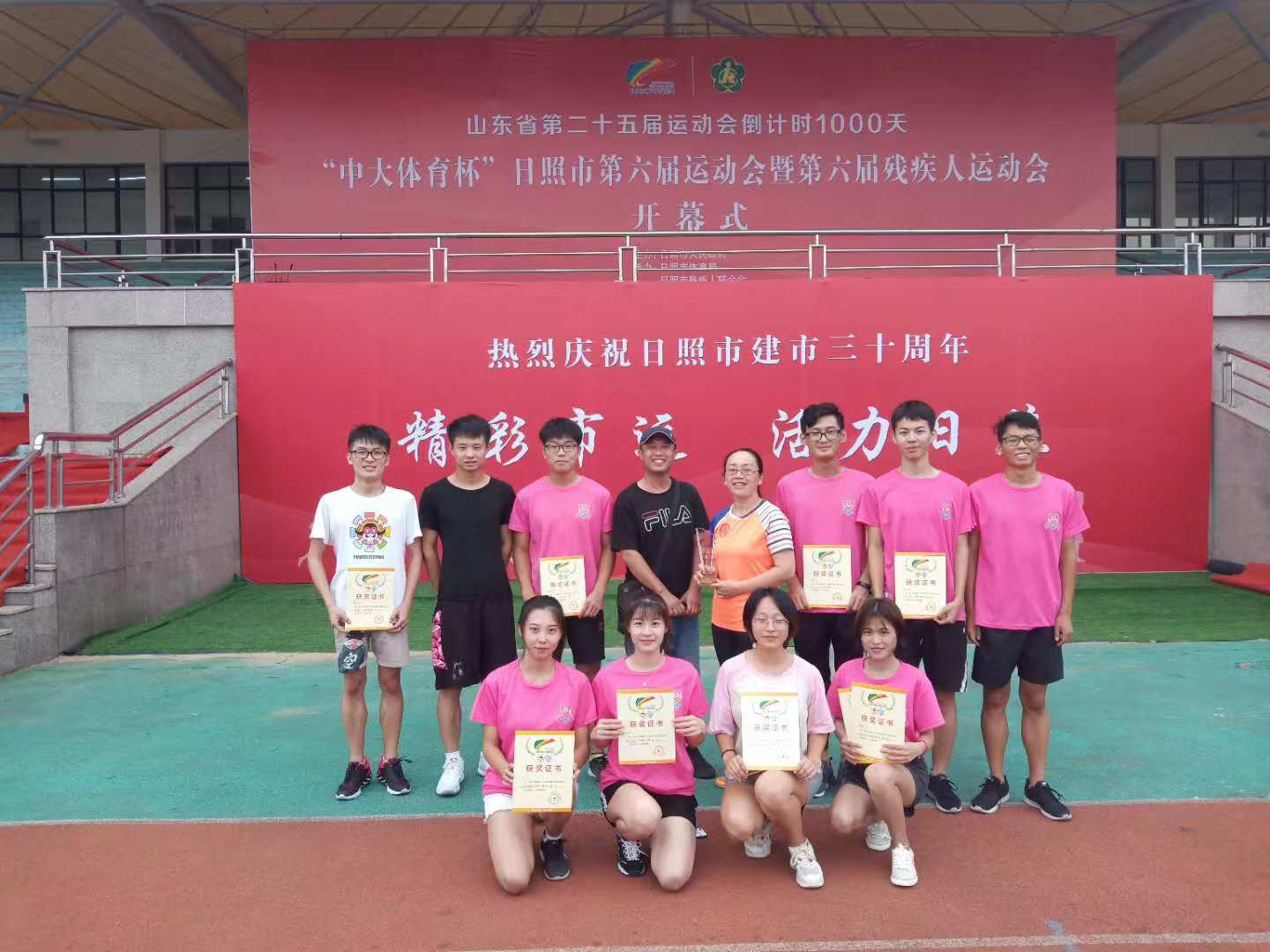 日前,日照市第六届运动会暨第六届残疾人运动会举行,我校50余名运动健儿参加了大会。经过激烈角逐,我校运动健儿最终以总分262.5的总成绩荣获日照市第六届运动会高校组第一名。