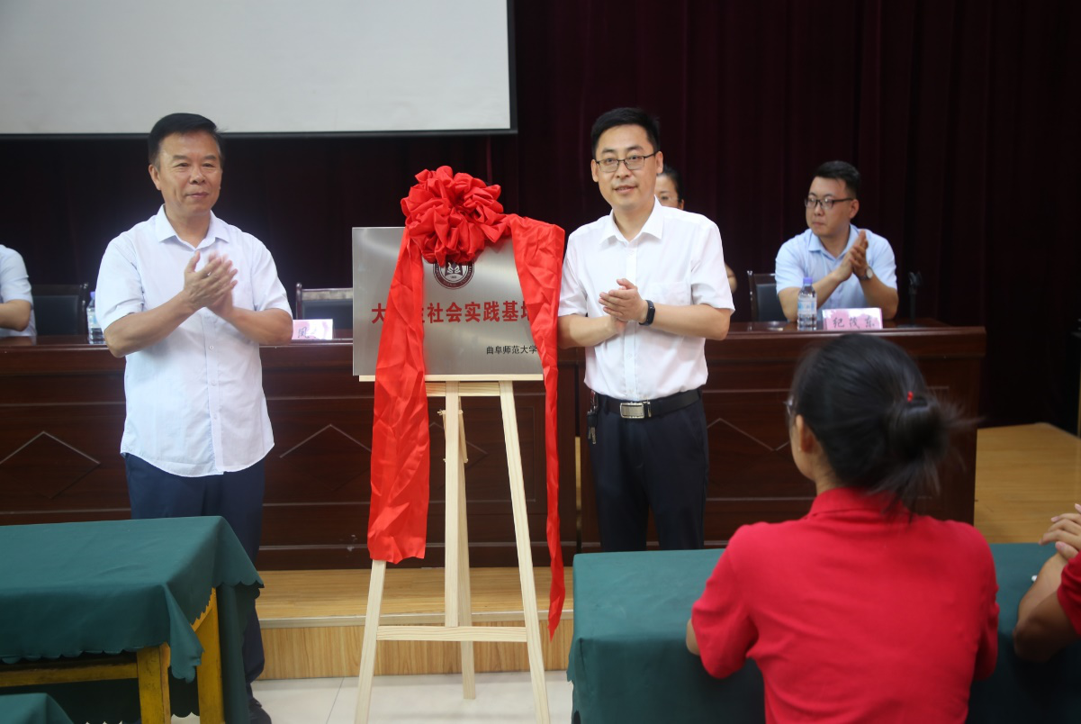 仪式上,曲凤东与李玉华共同为“D体育在线登录官网大学生社会实践基地”揭牌。
