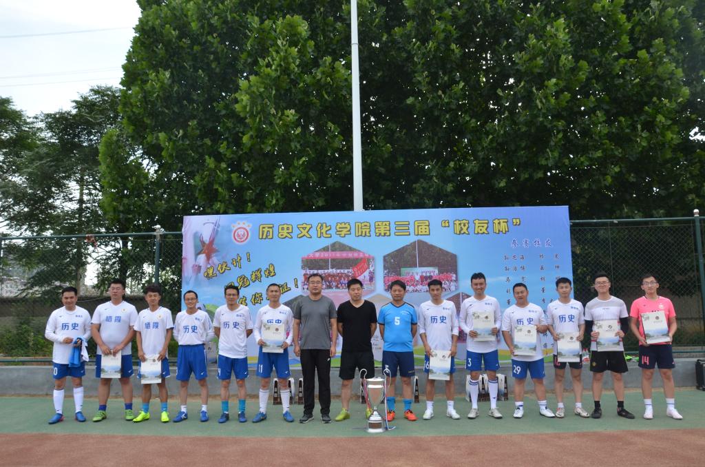 6月7日下午,历史文化学院第三届“校友杯”足球赛在学校西操场拉开帷幕。历史文化学院副院长吕厚轩、团委书记王建阳、工会主席刘伟,以及十余位毕业校友出席开幕式。
