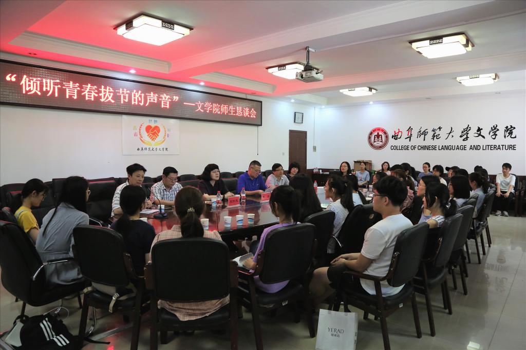 活动中,同学们就学习情况、成长困惑和与会老师进行了面对面交流,同学们积极踊跃,畅所欲言,气氛热烈。与会老师结合各自的成长经历对同学们的疑问做出解答。李金雷希望学生们能够树立专业自信,明确目标,做好大学规划,努力学习,珍惜大学时光,做一个有理想、有担当、有责任、充满正能量的大学生。夏静指出,作为文学院学子,要博览群书,尤其重视中国传统文化经典与文学经典的学习掌握,潜心学术,打通文史哲,还原中国传统文化重整合的特质,建构丰富的精神世界。王作茂就外语的学习与公费师范生问题谈了自己的看法和观点。刘聪希望年轻学子逐步具备宏阔的视野与比较分析的能力,霍俊国就文学理论的学习,与各位同学分享了自己的“秘笈”,段宁则对古代文学的学习给出了行之有效的方法。