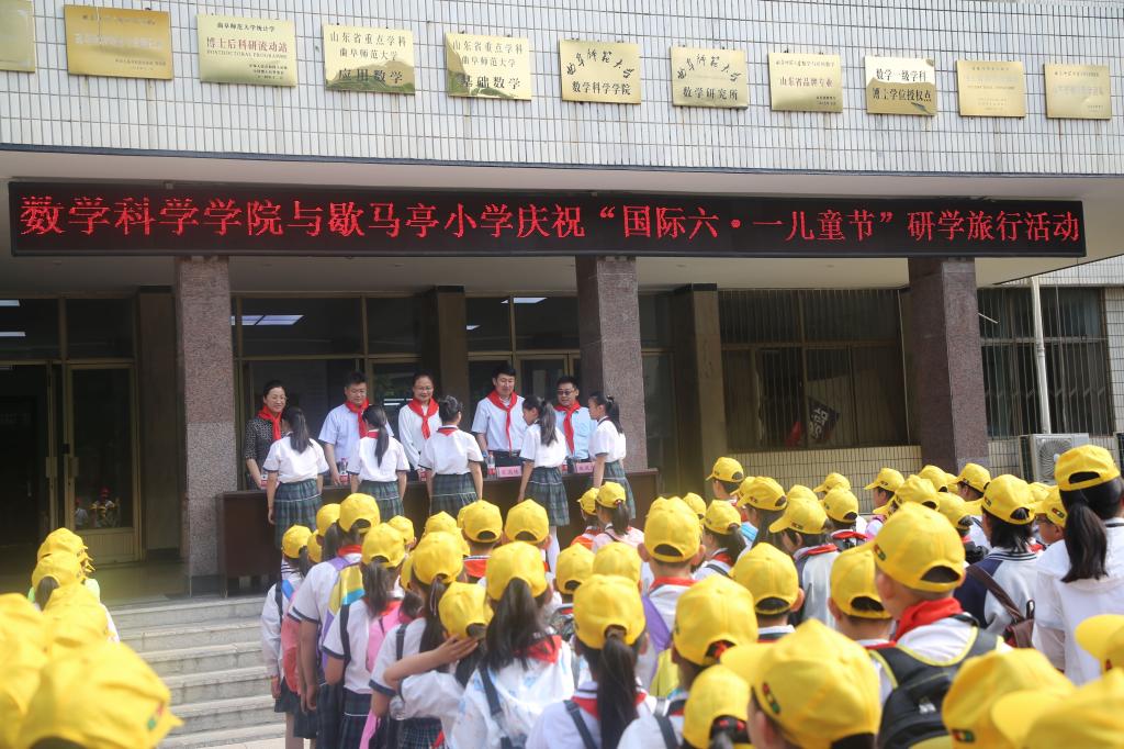 2019年是新中国成立70周年,也是“六一”国际儿童节设立70周年。数学科学学院策划了主题为“体验儒家文化,学做谦谦君子”庆“六一”爱心帮扶活动,邀请曲阜石门山镇歇马亭小学师生来我校参加。歇马亭小学校长郝瑞珍,我校团委书记宋国栋,数学科学学院党委书记刘建新、党委副书记曲凤东、团委书记朱伟卫参加了此次活动。