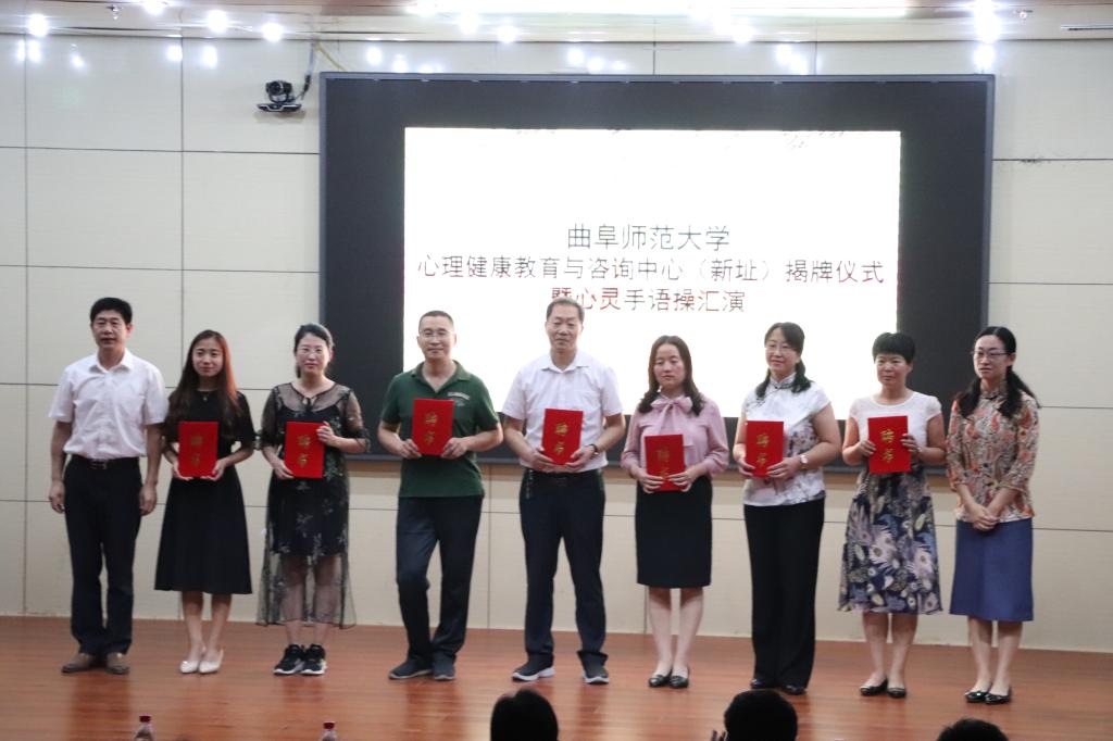 5月25日,由学生工作处主办的心理健康教育与咨询中心(新址)揭牌仪式暨心灵手语操汇演在日照校区图书馆报告厅举行。日照校区管理办公室主任孔令军,学生工作处处长姜美颖,校团委副书记刘蓉,武装部副部长赵秀臣,以及各学院党委副书记、心理辅导员共同参加活动。