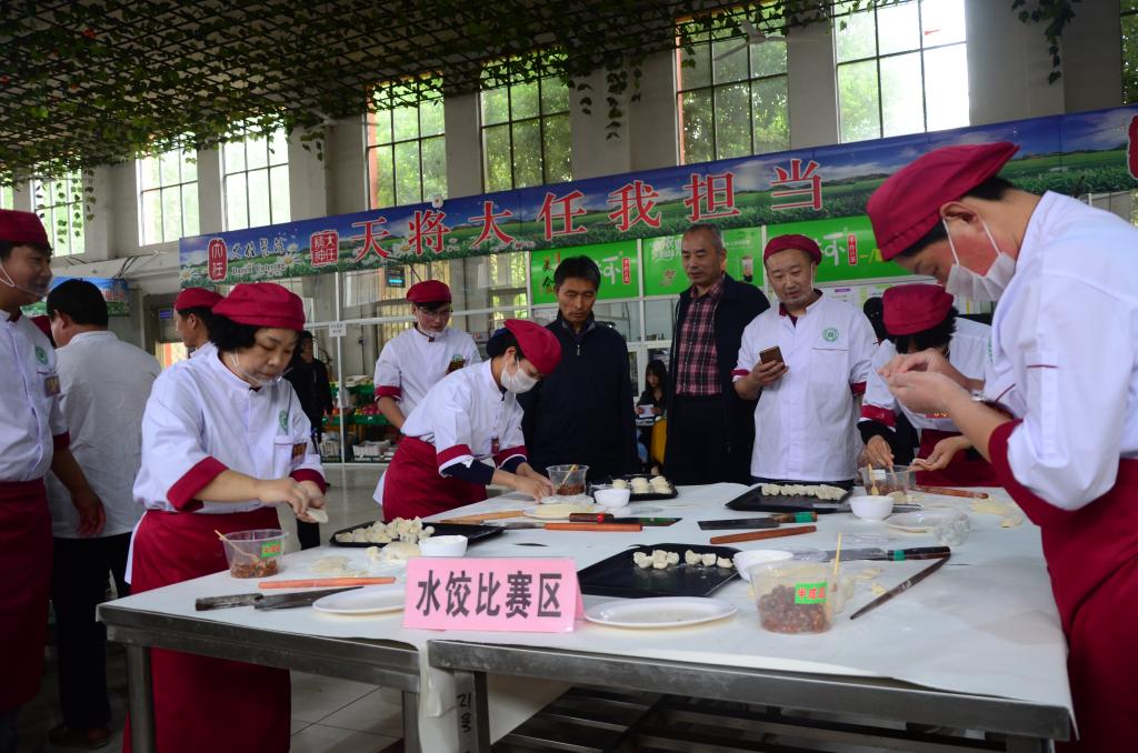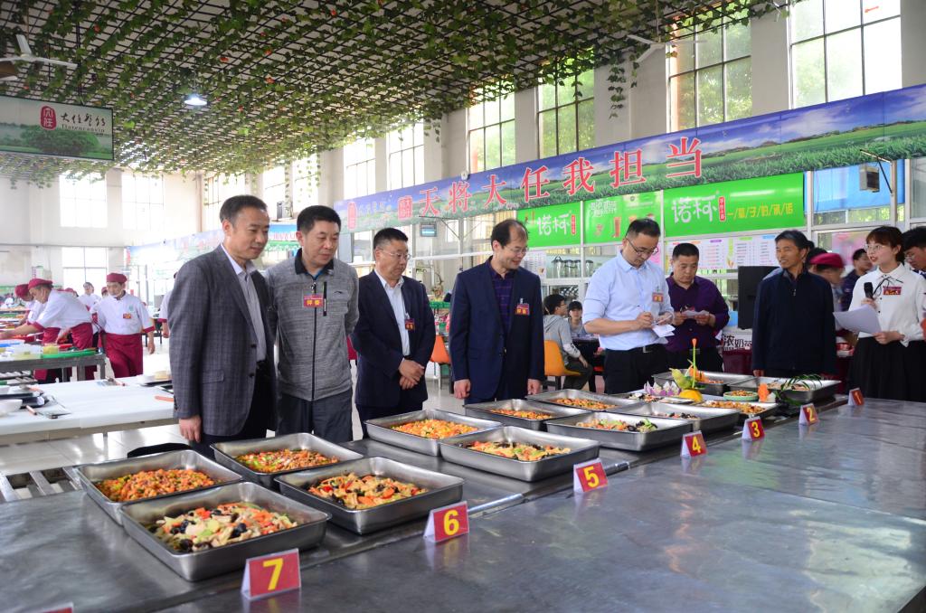 本次活动分学生组和职工组比赛。学生组比赛分为初赛和决赛,职工组分为烹饪比赛、刀工比赛和水饺制作比赛三个环节。学生组决赛分三个项目,分别为烹饪比赛、水果拼盘比赛和水饺制作比赛。活动现场紧张而有序,参赛职工和学生按照比赛规则在规定的时间内同台竞技,展示精湛的厨艺。在烹饪比赛项目中,各位选手均在规定的时间内完成菜品的炒制并摆上展台,菜品鲜亮诱人,与会领导分别从菜品色泽、外观、口感、味道、创意集与健康营养等方面对选手菜品进行了详细的点评。在比赛间隙,大赛组委会还为同学们准备了精彩的蛋糕裱花表演。蛋糕师傅精心制作精美大型蛋糕,让现场观众共同品尝。经过激烈角逐,比赛最后评出各参赛项目一等奖一名,二等奖两名,三等奖若干。同时,在颁奖现场一并公布表彰了后勤伙食工作2018年度先进个人、先进窗口和先进服务企业获奖名单。