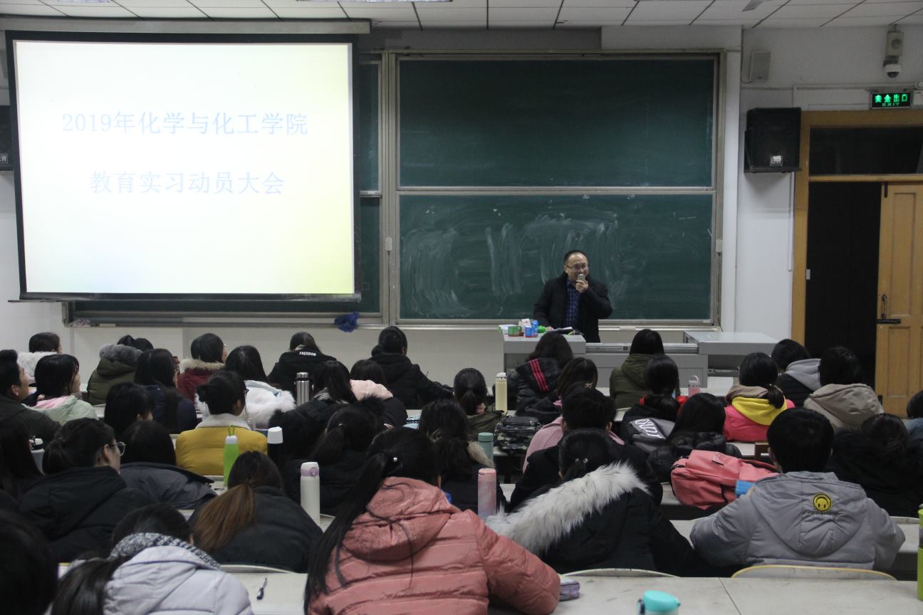 为贯彻落实《D体育在线登录官网师范生实习支教工作管理办法》相关规定,保障实习工作顺利开展,1月18日,我校化学与化工学院举行了2016级师范生教育实习动员大会。学院相关负责人、2016级化学专业全体师范生参加了会议。会议由胡蕾老师主持。