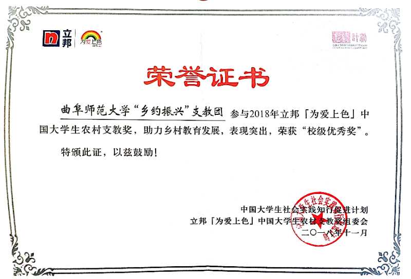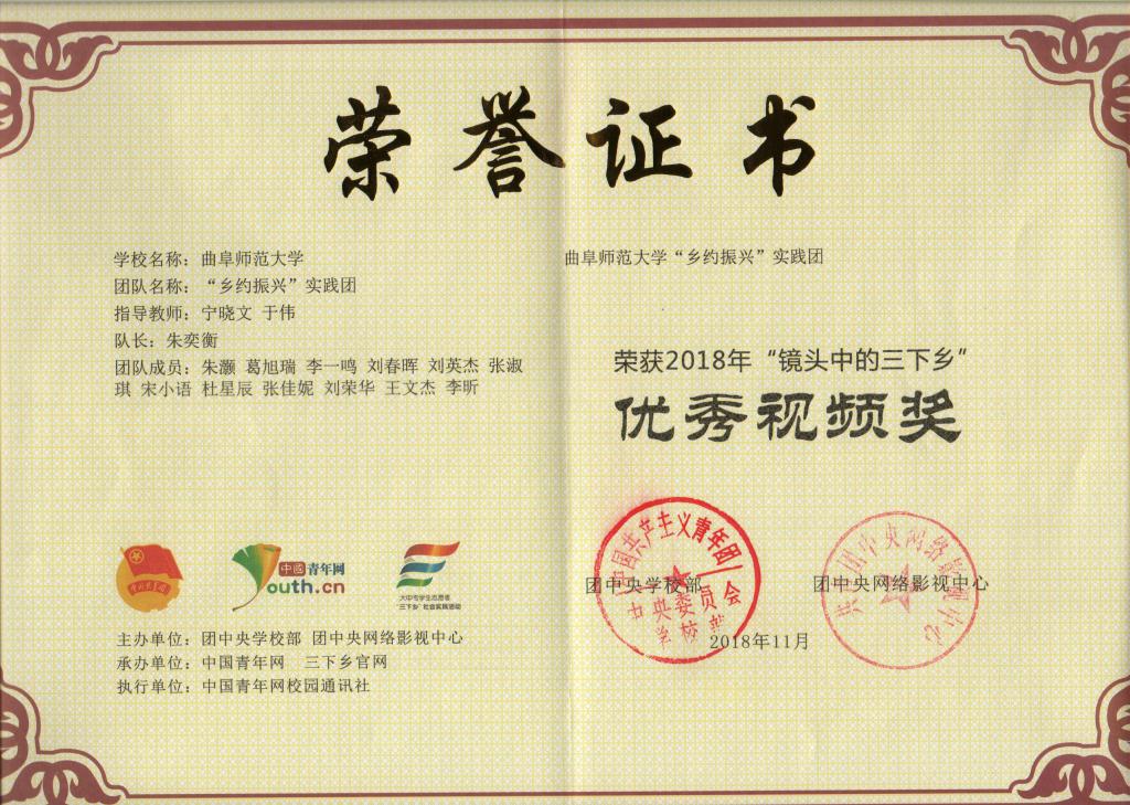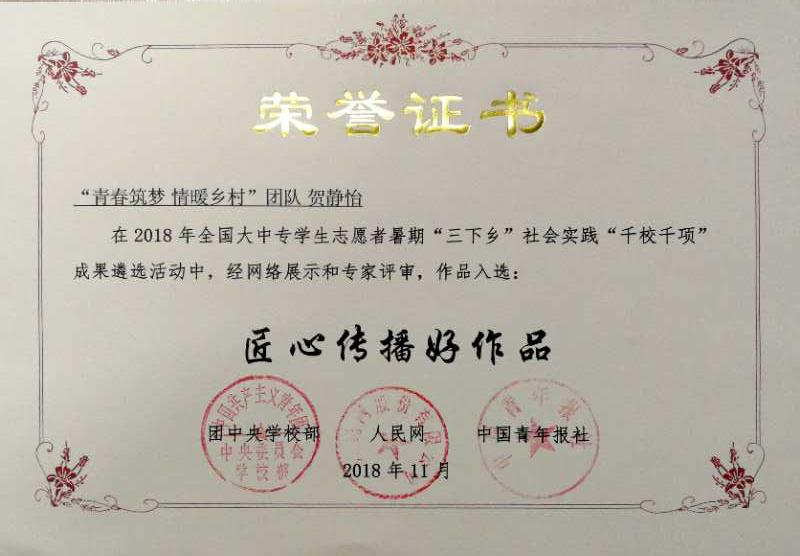 日前,由团中央学校部、中国青年报社、人民网共同主办的2018年全国大中专学生志愿者暑期“三下乡”社会实践“千校千项”成果遴选结果出炉。我校地理与旅游学院刘伟老师指导的“青春筑梦,情暖乡村”实践团队荣获“匠心传播好作品”。同时,在2018年全国大中专学生志愿者暑期“三下乡”社会实践“镜头中的三下乡”活动中,宁晓文老师、于伟老师指导的“乡约振兴”实践团获得“优秀视频奖”。在团中央学校部“中国大学生社会实践知行促进计划” 第二届「为爱上色」大学生农村支教活动中,“乡约振兴”实践团荣获“校级优秀奖”。至此,地理与旅游学院2018年暑期大学生社会实践活动取得了2个团队三次获得团中央嘉奖,2个团队荣获省级优秀社会实践服务队,刘伟、宁晓文、于伟3位指导教师荣获省“优秀指导教师”、刘克晓等11人获得“省大中专学生志愿者暑期‘三下乡’社会实践活动优秀学生”的优异成绩。