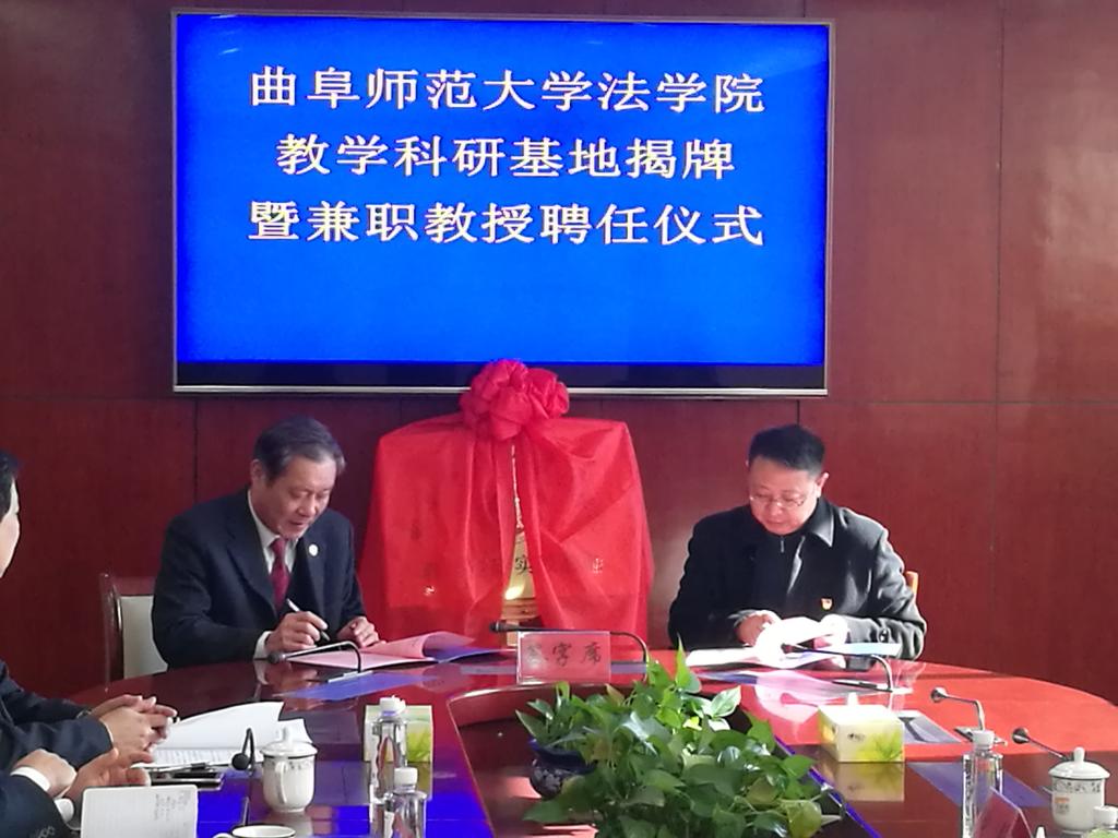 解绍波与张益刚分别代表诸城市人民检察院和我校法学院签订了《教学科研实践基地建设协议书》,共同为“D体育在线登录官网法学院教学科研基地”揭牌。仪式上,王彦青受聘为我校法学院兼职教授,并接受了聘书。