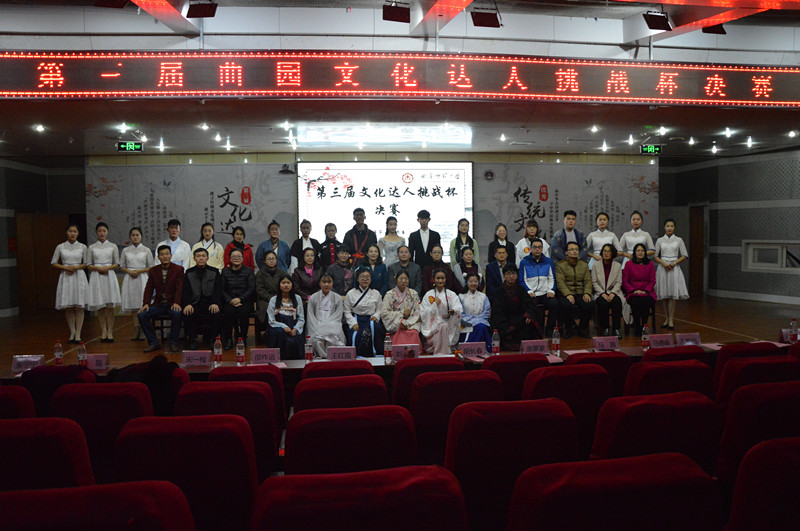 12月8日下午,我校第三届文化达人挑战杯决赛举行。比赛由校团委、图书馆举办,图书管理与服务学生委员会承办。地理与旅游学院党委书记胡长春、校团委副书记刘蓉、历史学院副教授王红霞、校团委宣传部部长马腾作为特邀嘉宾出席了本次决赛,图书馆主要负责人以及教师参加了本次比赛。