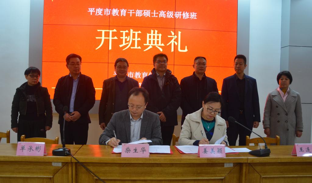 近日,教育学院与平度市教育体育局合作举办的平度市首届教育干部硕士高级研修班开班典礼暨第一期培训活动在平度一中隆重举行。教育学院党委书记姜美颖、党政办公室主任王连生、学校语言文学研究所所长单承彬、平度市教体局局长柴生华、局党委成员、教体局教研中心师训部全体人员以及首届研修班的260名学员参加了开班典礼。开班典礼由平度市教体局副局长马学兵主持。