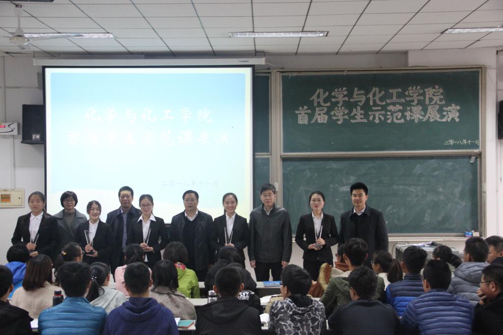 11月7日下午,我校化学与化工学院成功举办首届学生示范课展演活动。教务处处长胡钦晓、学院党委书记赵琪、院长尤进茂、党委副书记孙俊华、副院长冯媛媛、教法教研室姬广敏、苗深花,辅导员王亚平出席本次活动。