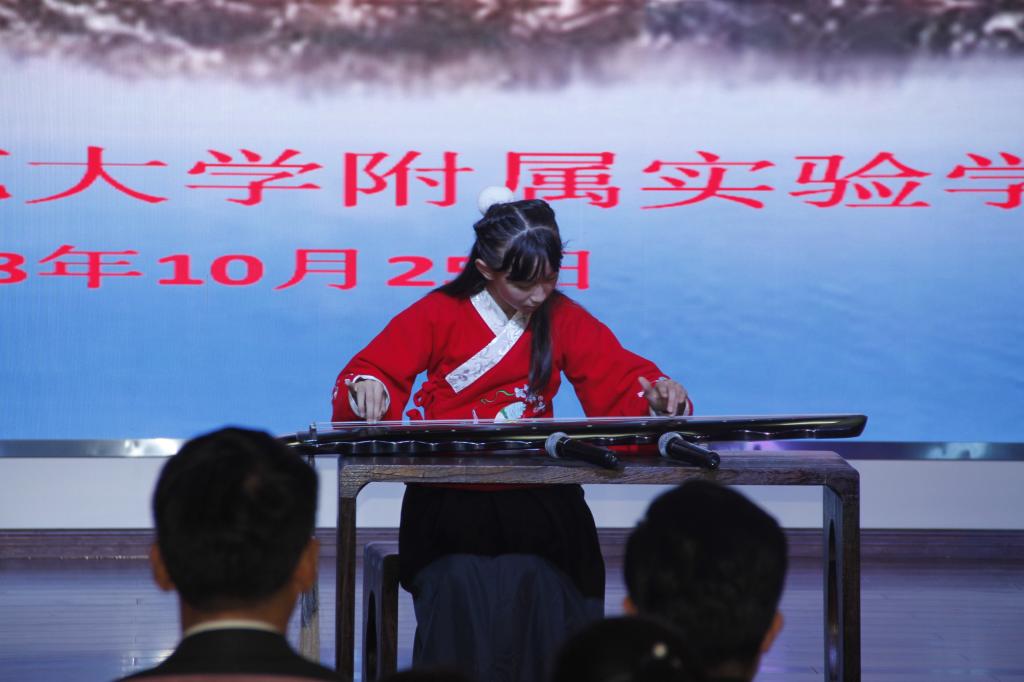 林丽在致辞时指出,古琴艺术作为中华文化和理想人格的象征,对于培养我们的情操,弘扬祖国的传统文化具有积极的意义,希望学校师生珍惜学习机会,加强艺术熏陶,提升艺术魅力。