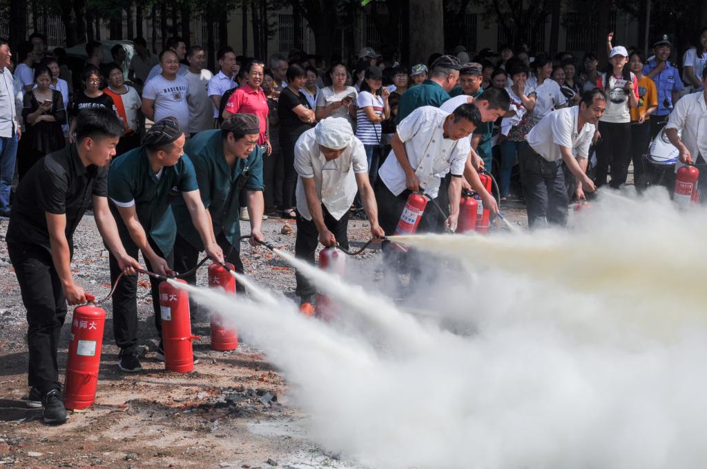 活动最后,消防官兵代表讲解了火灾的危害、预防、逃生、救援与自救等相关知识。并为现场人员讲解了消防器材的基本原理,演练了灭火器材的使用方法。各食堂职工代表踊跃参加,当场练习了灭火器材的使用,场面极其壮观热闹。