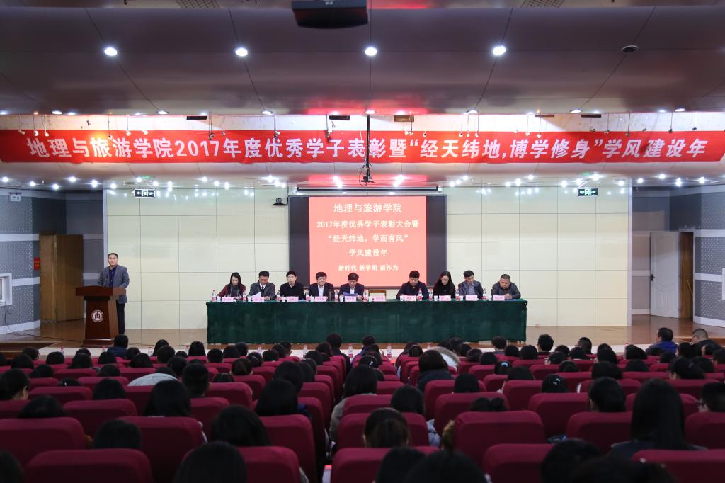 为营造良好学风,激励学子奋发向上、砥砺前行,3月15日,地理与旅游学院2017年度优秀学子表彰暨“经天纬地,学而有风”学风建设年启动仪式举行。学生工作处、校团委、地理与旅游学院负责人以及2016、2017级辅导员和班主任老师,2016、2017级全体同学参加仪式。