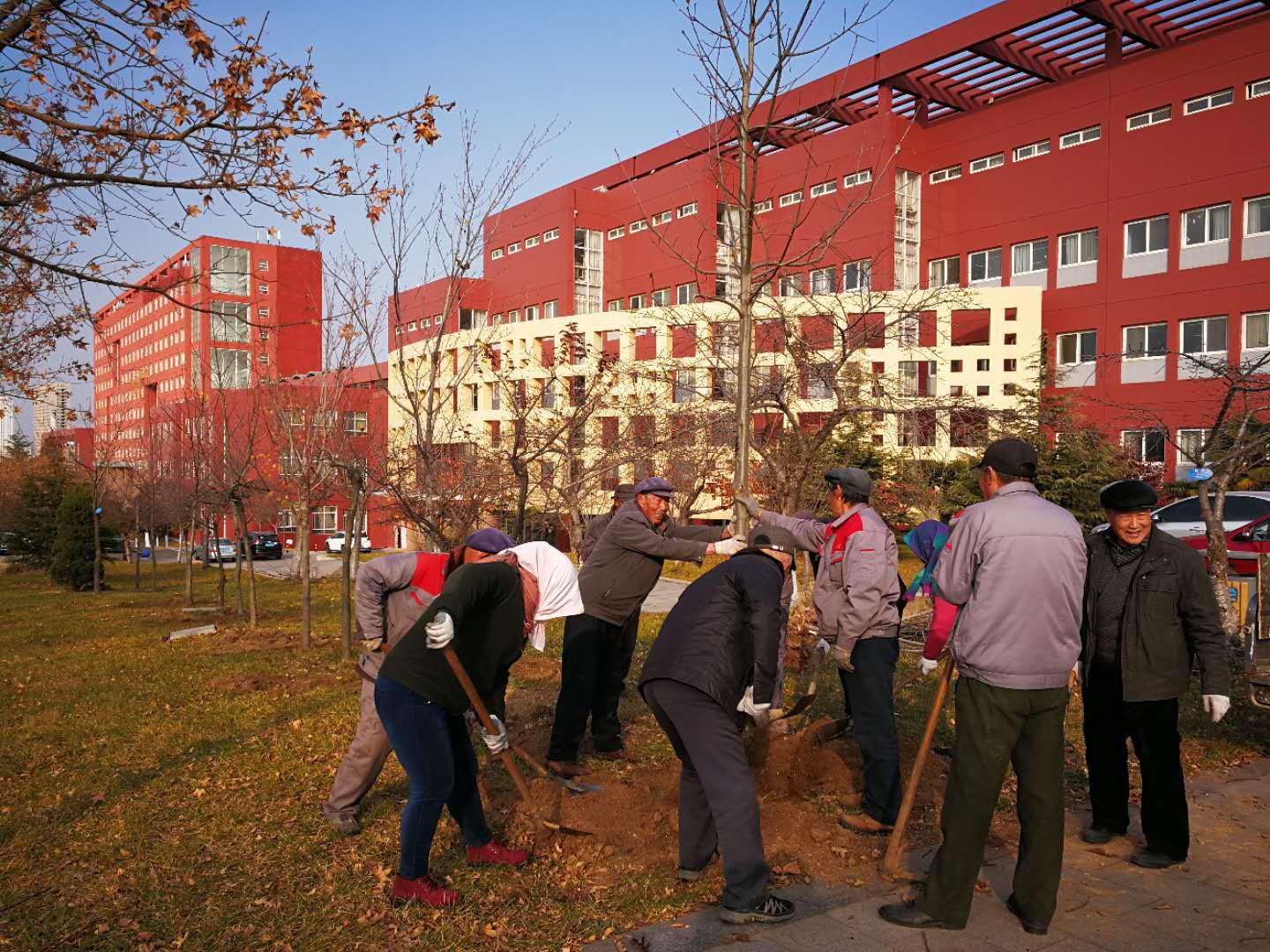11月29日,由美术学院教师袁博生捐赠的176株苗木栽植校园,后勤管理处将树木分别种在美术学院、图书馆、老干部处等校园区域。
