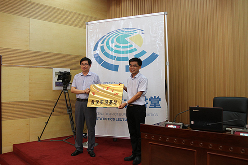 仪式上,尹传存为教学实习基地授牌,刘明海与苏余海共同签署教学实习基地合作协议。签约仪式后,尹传存教授为垦利区统计局及镇(街道)统计站全体人员做了“大数据及其应用”的讲座。