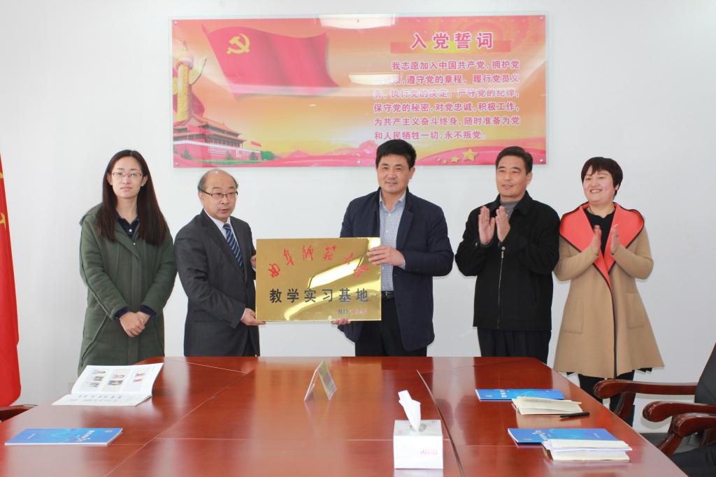 会议最后,临朐广播影视中心党委书记、主任孙秉明与传媒学院党委副书记肖龙航签署了教学实习基地协议,双方共同揭牌。揭牌仪式结束后,在临朐广播电视台工作人员的陪同下,老师和同学们参观了临朐广播电视台,孙秉明介绍了临朐广播电视台近期的发展状况。