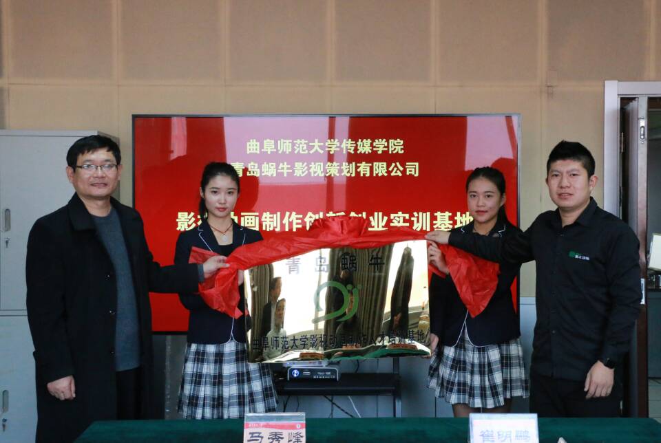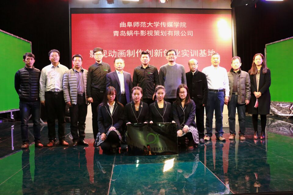 12月1日,青岛蜗牛影视公司——D体育在线登录官网影视动画制作人才培养基地揭牌仪式在我校顺利举行,传媒学院院长马秀峰、副院长王焕景,教务处副处长张全景,青岛蜗牛影视策划有限公司CEO 崔明鹏、经理崔叶涛以及招生就业处、传媒学院相关师生出席揭牌仪式。