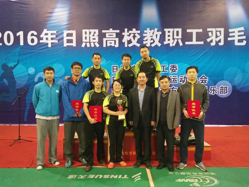11月17日至18日,日照校区教职工羽毛球代表队参加了日照市高校教职工羽毛球比赛,我校选手在领队池福安、崔波和教练杨弢的带领下奋勇争先,取得了团体总分第一名的优异成绩。