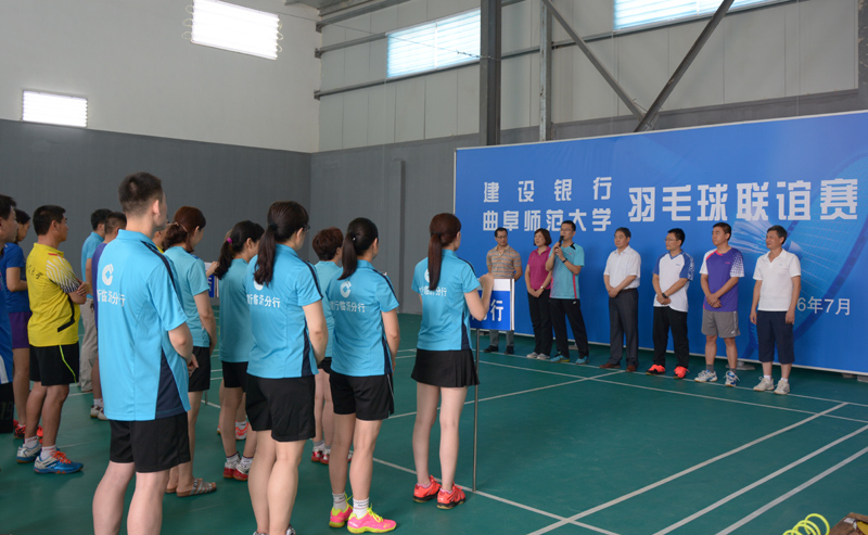 7月10日,我校羽毛球协会与建设银行山东分行羽毛球联谊赛在我校举行。副校长马东骅致欢迎词,代表学校对联谊赛的举办表示祝贺,希望双方以联谊赛为契机,进一步增进了解、加深友谊,推动双方的深度合作、共赢发展。